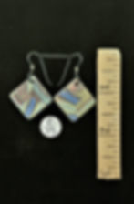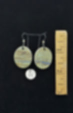 The earrings are die-cut from very thin slabs of patterned colored porcelain with either a glazed back or a second layer of patterned porcelain. The ear wires are of 3 types; hypoallergenic black niobium, sterling silver or gold plate. The ear wires are chosen to complement the colors in the earrings. They are extremely lightweight.